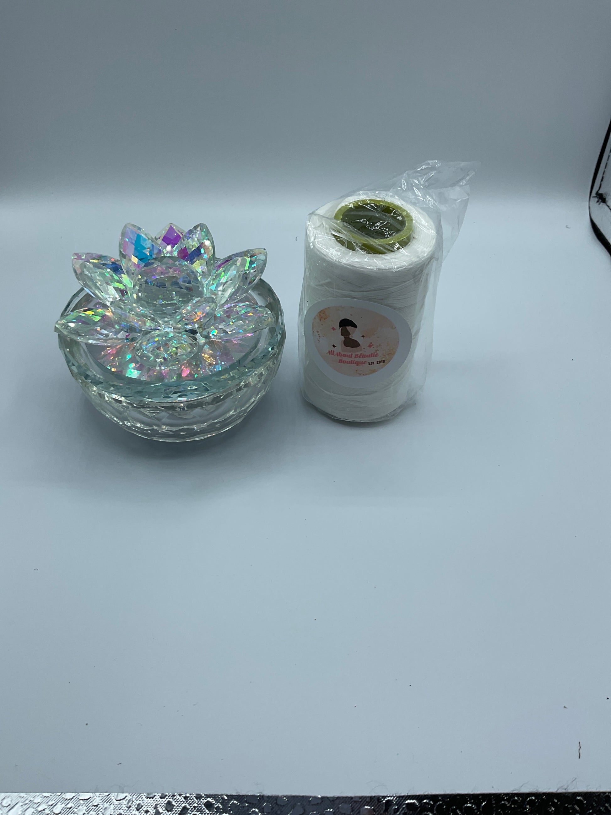 Waist bead thread .5mm thick thread. No need to cut multiply strands for one bead strand. Medium thread is a cord for bracelet making. Small roll is a poly blend. Large roll is Nylon blend. Both threads can fit 8/0 and 6/0 beads and both have a lite coating for easy needle threading Thread is vary durable for your beading projects. All sales are final so please make sure you select the right thread. No exchanges or refunds on any thread.